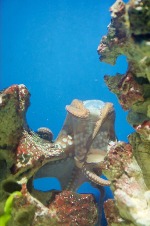 Darüber hinaus können sich Kraken – wie Sepien – sehr gut tarnen: Sie können nicht nur ihre Farbe, sondern auch die Textur ihrer Haut blitzschnell an ihre Umgebung anpassen – dank spezialisierter Pigmentzellen (Chromatophoren) und Muskelfasern in der Haut.
